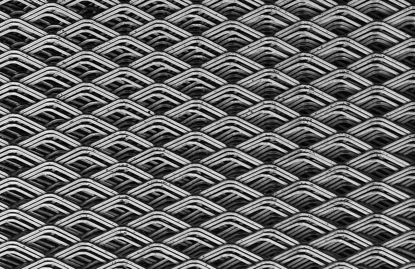 A chapa expandida ¼ é uma chapa metálica que passa por um processo industrial de corte e estiramento (repuxo), que se transforma em uma malha rígida com padrão de losangos interligados.